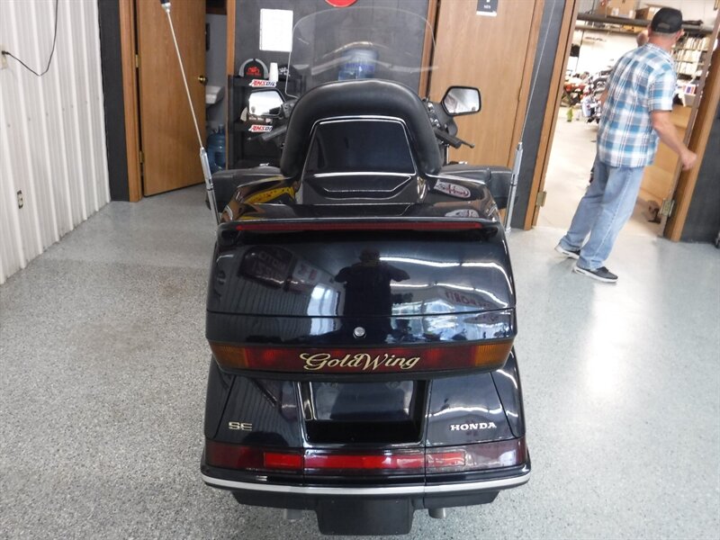 Tall windshield, wind deflectors, AM/FM/CB, cruise control, reverse, air suspension, Corbin seat with drivers backrest and trunk spoiler. Gold Wing luxury on a budget.