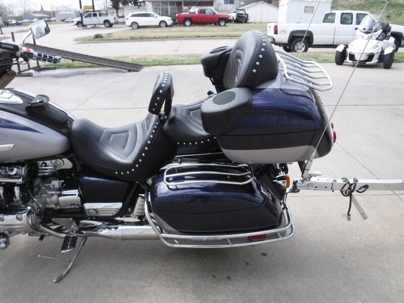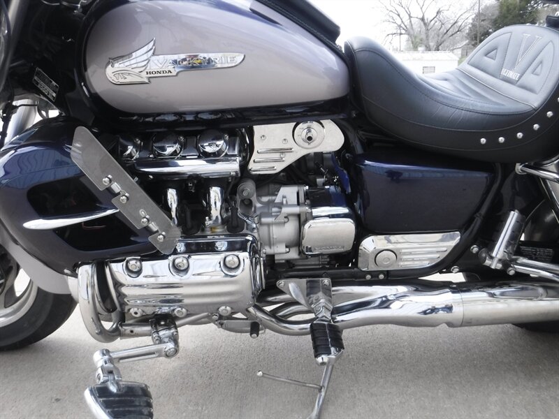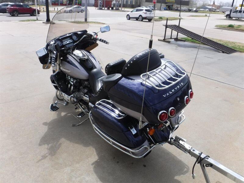 Good looking 2-tone Valkyrie Interstate with wind deflectors, cruise, AM/FM, Ultimate seats, driver backrest, trailer hitch, and stock seat. This bike DOES NOT sell with the trailer seen in pictures.