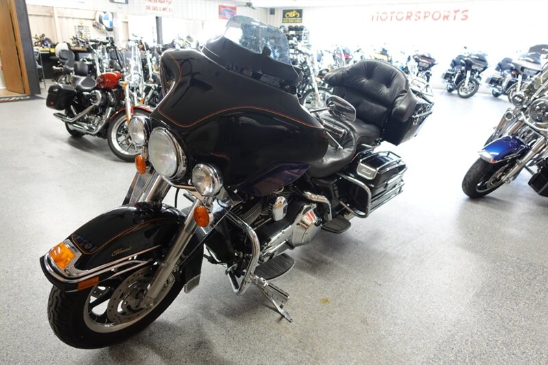Pretty clean old Electra Glide Classic that runs and rides right but could use a little love to make it a worthy highway bike! Equipped with slip on exhaust, aftermarket intake, saddlebag luggage racks and guards, highway pegs, lower wind deflectors, passenger grab rails, and AM/FM radio.