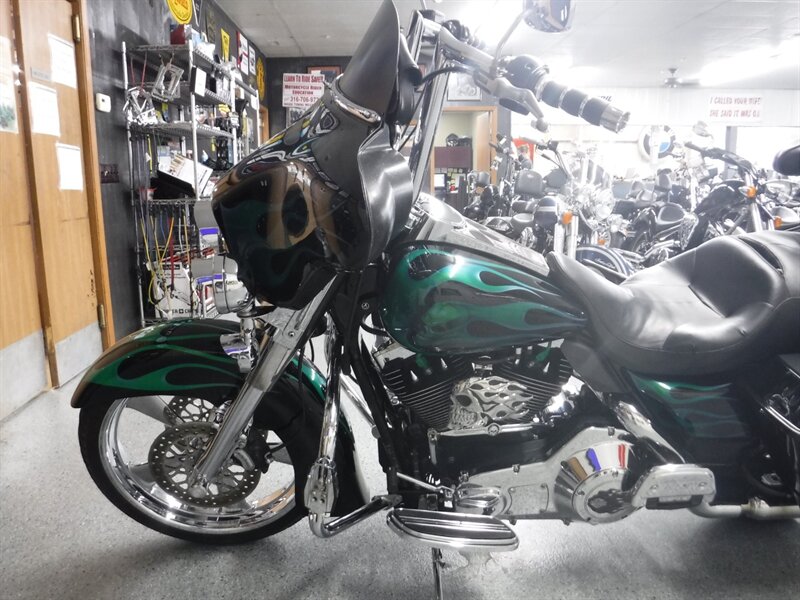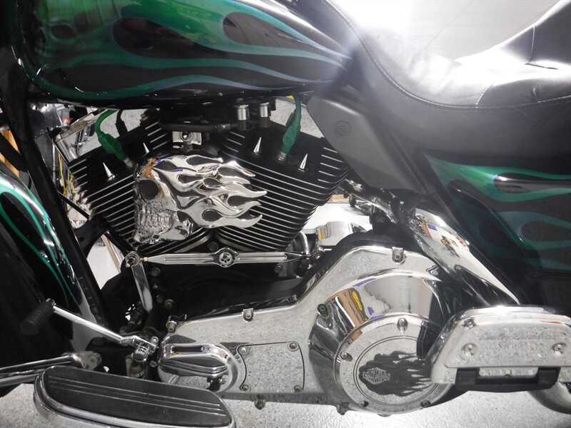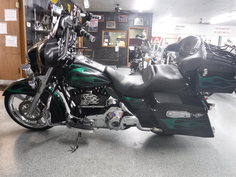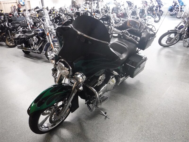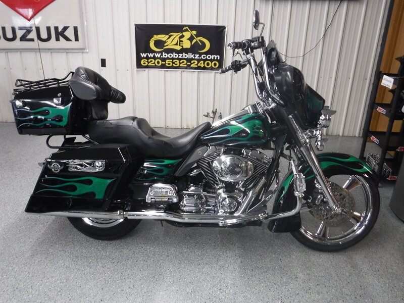Sells AS-IS and will need to be trailered home for the following reasons: Needs front tire, has typical Harley leaks, volume switch does not work, & trunk latch is broken. This Electra Glide Classic is a solid old bagger that rides well with 100k miles. This bike has two month old Legend shocks and taller bars.