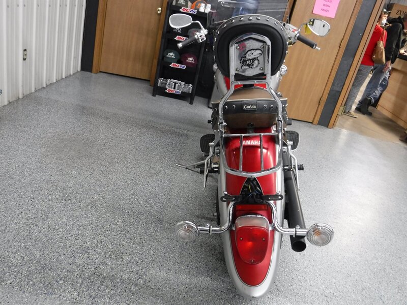 Lots of extras on this V Star 650; windshield, aftermarket intake, Cobra exhaust, Corbin seat with drivers backrest, passenger backrest and luggage rack.