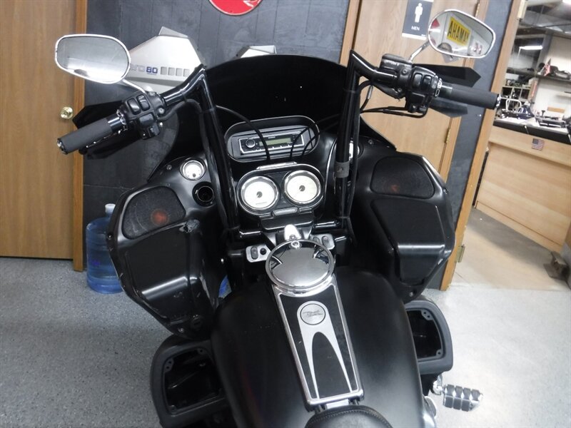 This Road Glide runs and rides good and would make a good cheaper touring bike. Equipped with fishtail exhaust, LED blinkers, hand guards, different seat with driver backrest, new model HD touring bags, highway pegs, cruise, taller bars, aftermarket grips/levers, quick detach mounts, and Kenwood head unit with aftermarket speakers.