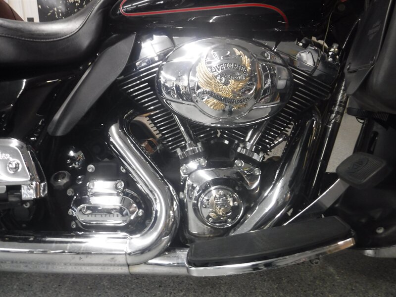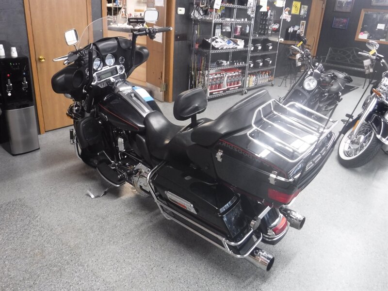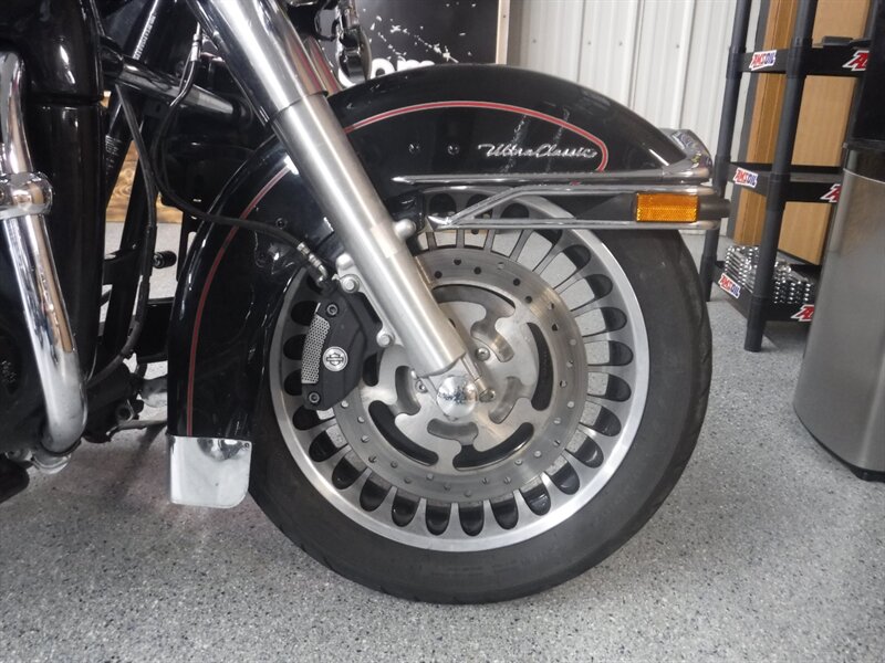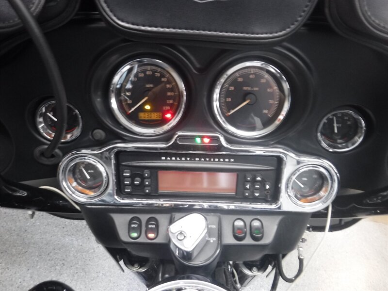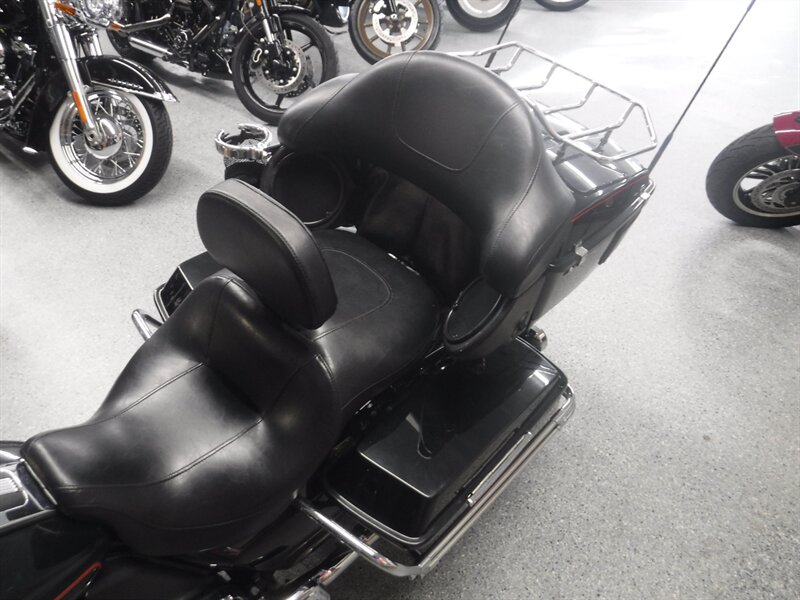 Ultra Classic equipped with driver & passenger floorboards, taller bars, heated Avon grips, AM/FM, cruise, aftermarket slip ons, driving lights, and a driver backrest.