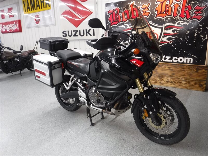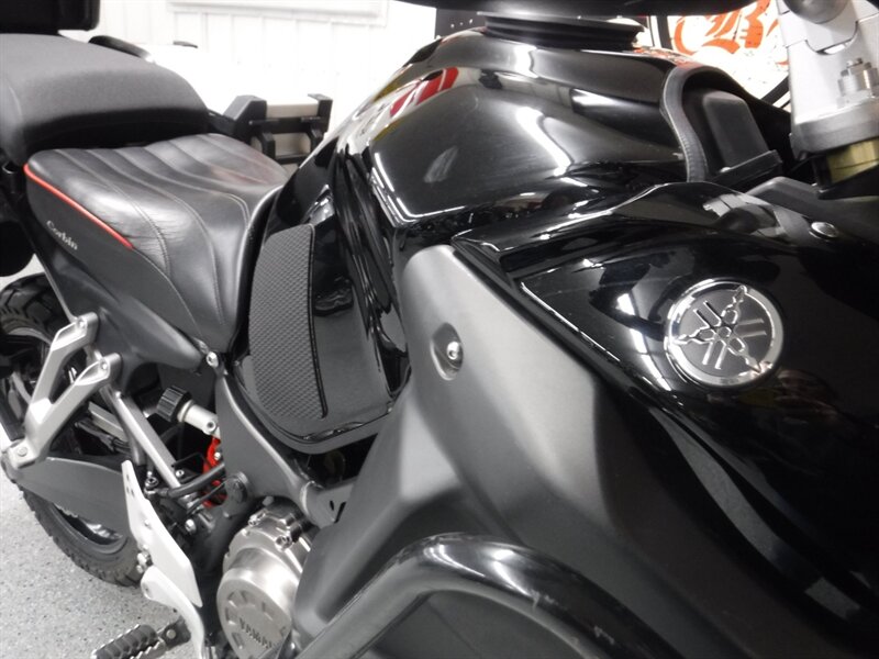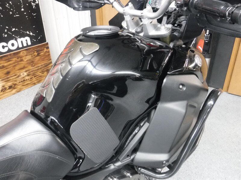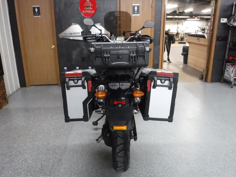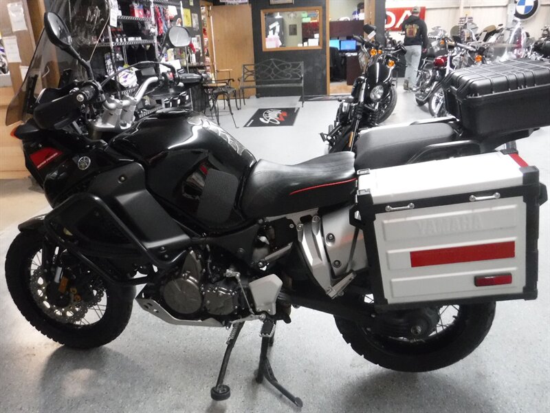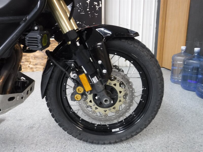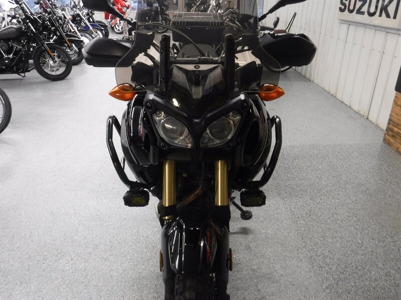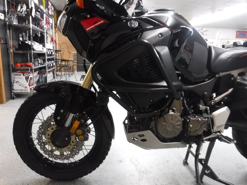 Pick any road and any adventure, the Super Tenere is ready with skid plate, taller windshield, hand guards, engine guards, top case, auxiliary lights, Corbin seat, and Yamaha hard saddlebags. (Will leave with both new tires)