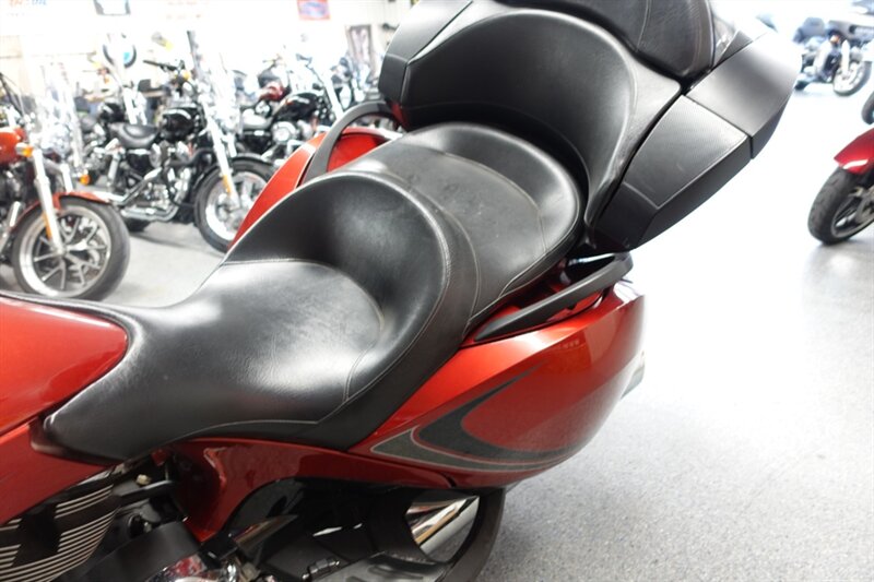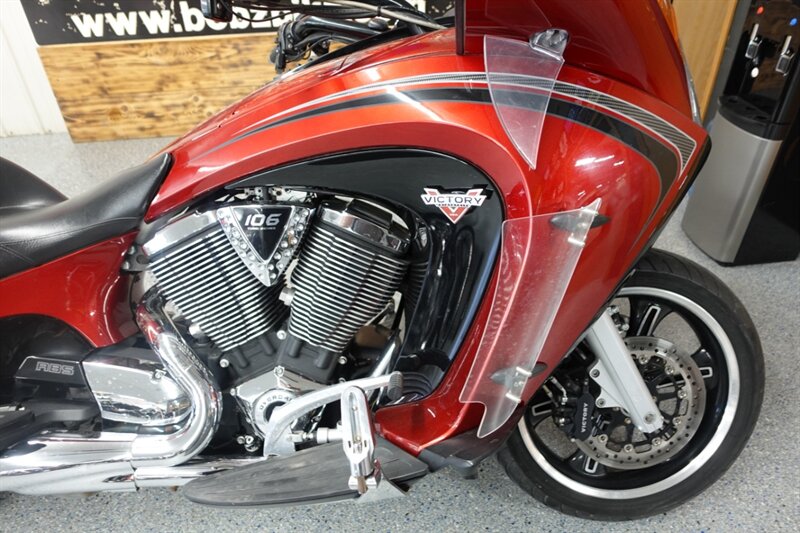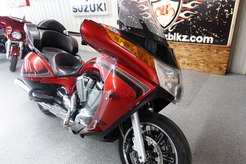 Not many bikes out there as spacious as a Vision Tour, nonetheless with this much power! One owner. Victory's Sunset Red & Black. Equipped with lower wind deflectors, highway pegs, ABS, electronic adjustable windshield, heated grips, AM/FM, and cruise.