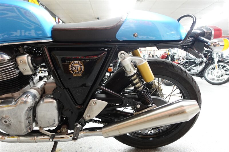 Really nice, low mile Continental GT 650. Added solo seat with color matched rear cover, PoweRage slip ons, and bar end mirrors. We also have the OEM seat, slip ons, and mirrors. Bike does have ABS. Factory warranty through 06/05/2026.