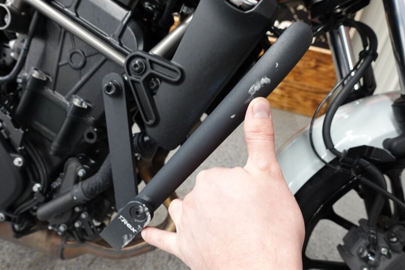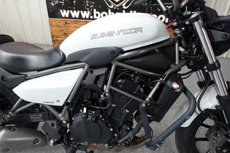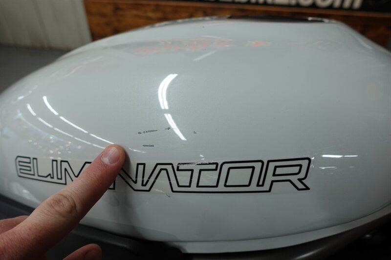 This Eliminator ABS looks fantastic in Kawasaki's Pearl Robotic White! Added T-Rex engine guard. Checked in great with the low miles!
