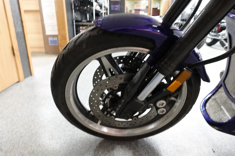 Another really clean AS-IS machine! This Warrior runs and rides strong like a Warrior should! Tires are in good condition, front is from 2021 with 4/32nds left, the rear is from 2022 with 6/32nds left, but it is the wrong weight rating. Equipped with 2-1 Graffeo exhaust. Comes with quick detach fairing and backrest/luggage rack.